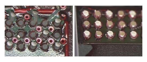 PCB solder joints formed with BGA and SMT connections are evaluated by Dye & Pry.