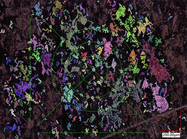 In our optical microscopy lab, we can measure features at 2500x magnification. The field of view narrows to approximately 120 × 90 μm, allowing for imaging features that approach a micron in size.
